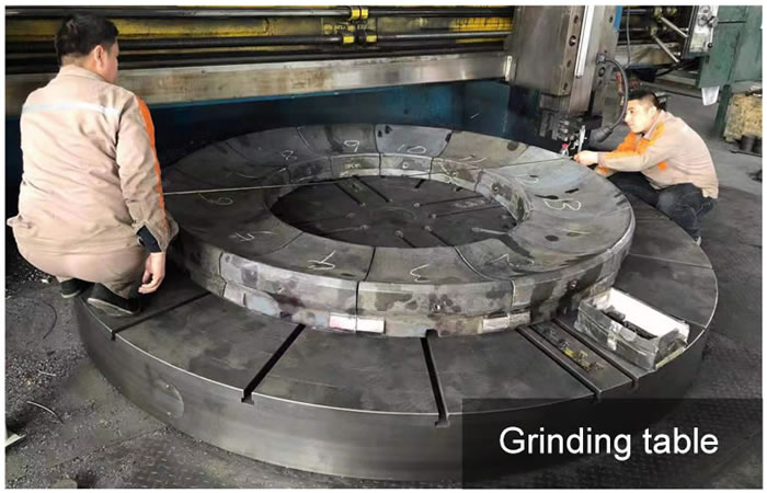 O revestimento do moinho vertical é dividido em côncavo, plano e tipo tigela, que correspondem ao tipo de pneu, cone e tipo de cilindro do rolo de moagem, respectivamente. Mesas côncavas e planas são comumente encontradas no mercado.